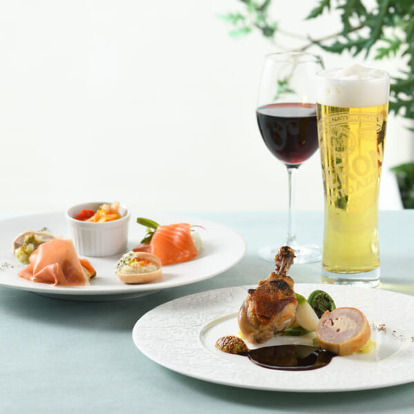全面ガラス張りの解放感溢れる店内、屋上庭園に隣接するテラス席も併設され、武道館やお堀、靖国神社の鳥居などを眺め、四季折々の景色の移ろいに癒されます。