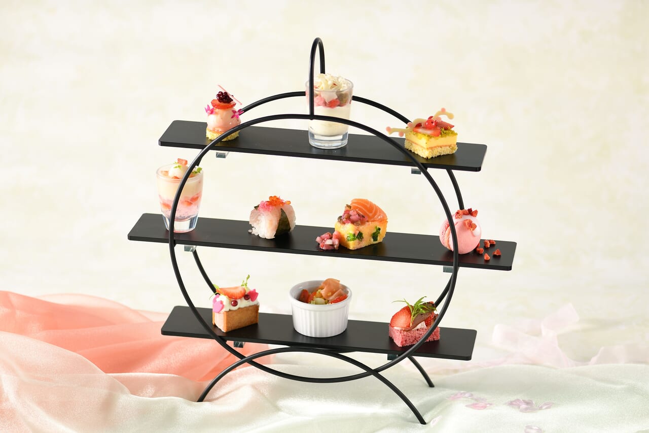 春の陽だまりに咲く桜などの花々と苺をイメージした、ペールピンクのスイーツに心ときめく苺アフタヌーンティー。