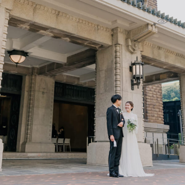 最上階の屋上で北の丸公園の四季折々の景観を正面に、都内でも希少な屋上挙式が叶います。趣のあるエントランス挙式では、登録有形文化財だからこその唯一無二の雰囲気で挙式を執り行うことが可能です。