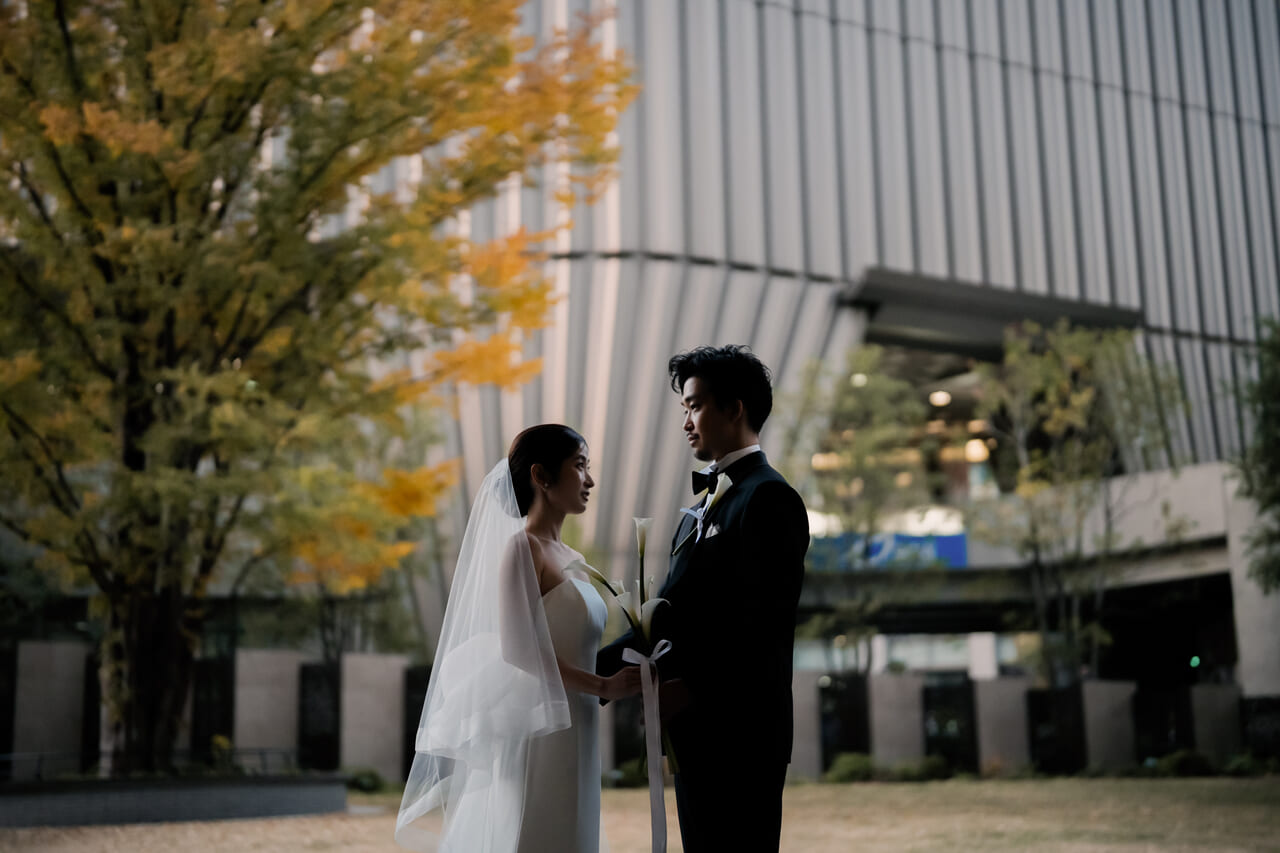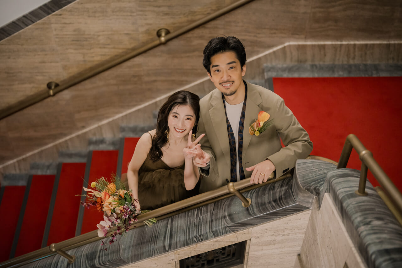 大人の洗練と温かな柔らかさが調和したドレスコーディネートは、この日の空間にも美しく寄り添い、おふたりの魅力を彩っていました。